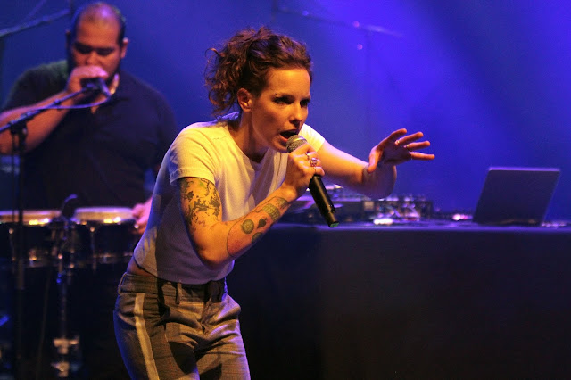 elle en parle sur fond des balances de "Lily" pour la soirée "Muses" du Printival.